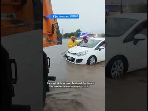 Alți doi oameni s-au refugiat pe capota mașini pentru a scăpa de inundații. Echipajul se afla în drum spre un alt șofer a cărui mașină fusese luată de viitură.