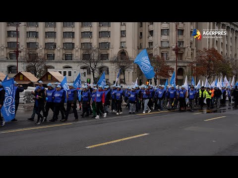 Blocul Național Sindical a organizat, miercuri, un protest în Piața Victoriei din Capitală, pentru a exprima nemulțumirea față de politicile guvernamentale care au alimentat inflația.